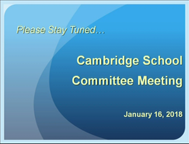 - Cambridge School Committee Meeting 1/16/18